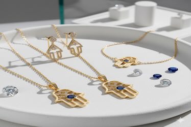 Contemporary Israeli jewelry designers create sleek, minimalist Hamsa pieces in 14k or 18k gold. These designs emphasize clean lines and modern aesthetics while honoring the symbol's protective meaning. Often studded with diamonds or sapphires (representing the "eye"), they're popular in both religious and secular contexts.